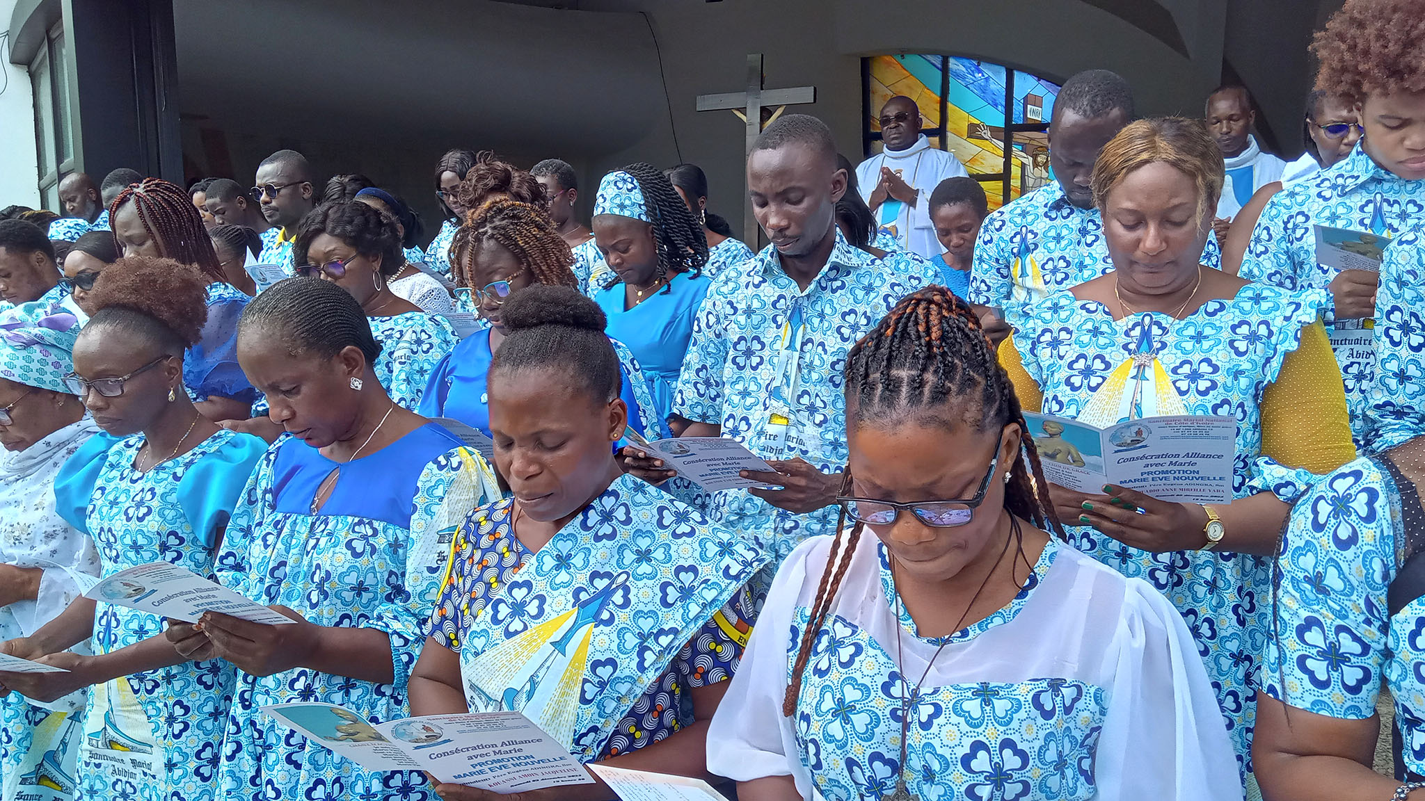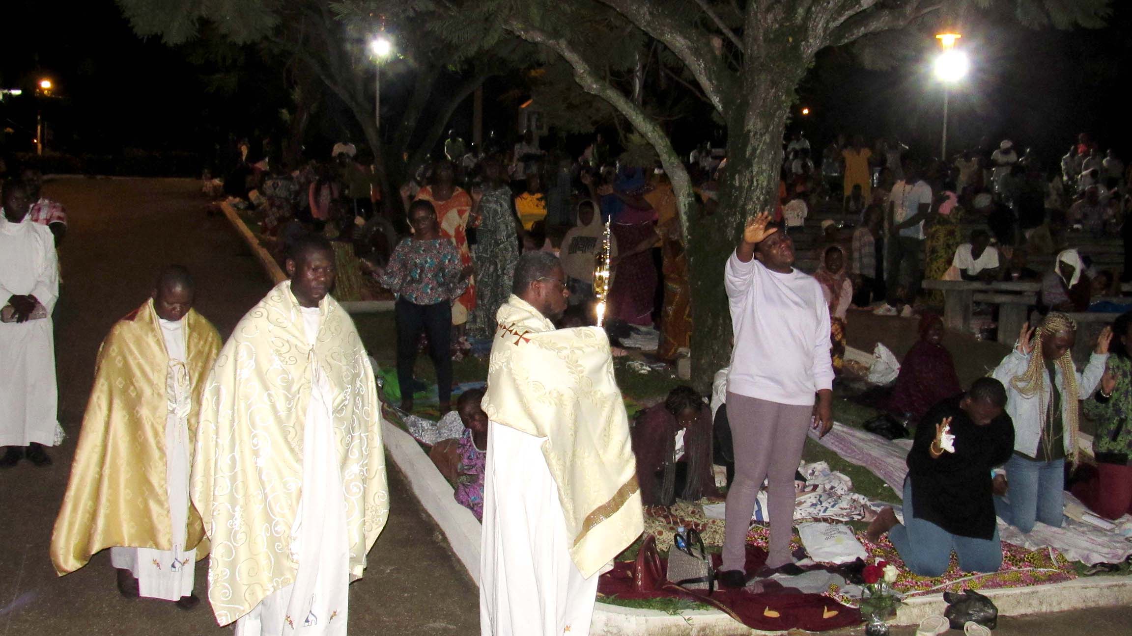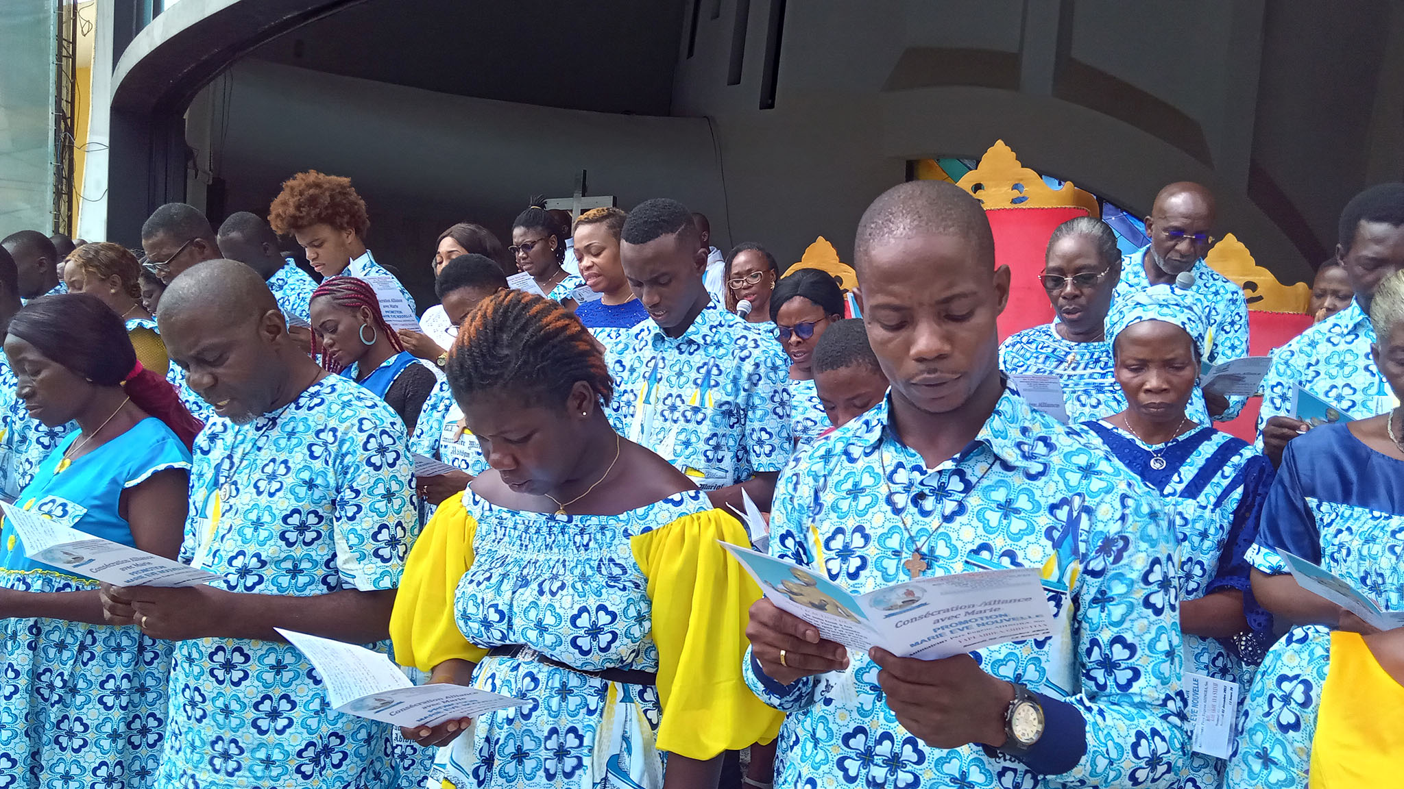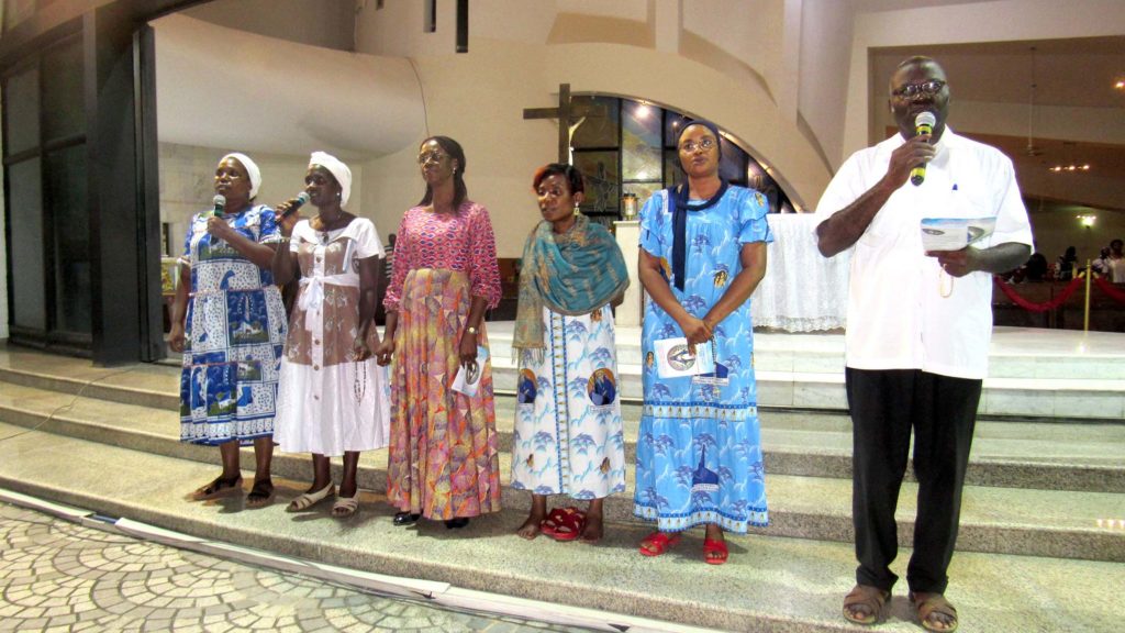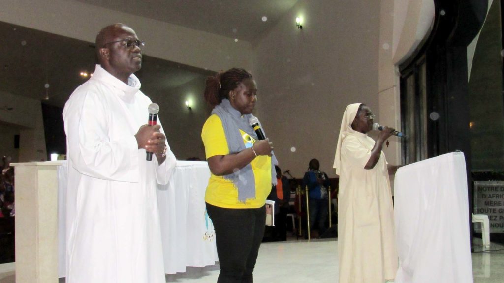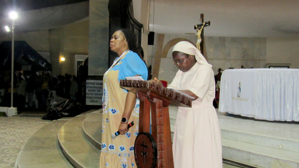 Ce temps de prière a été marqué par la récitation des différents mystères du chapelet, l’invocation du St Esprit, la présentation des groupes à spiritualité mariale. Il faut noter que ce pèlerinage à réuni une dizaine des groupes à spiritualité mariale, notamment : les consacrés à Marie, la communauté Laïcs Marianiste, les Amis du Rosaire, la Jeunesse Mariale Vincentienne, Maria Rosa Mystica, Flamme d’Amour, les Équipiers du Rosaire, la Communauté Oeuvre de Marie, Notre Dame du Perpétuel Secours et la Légion de Marie.