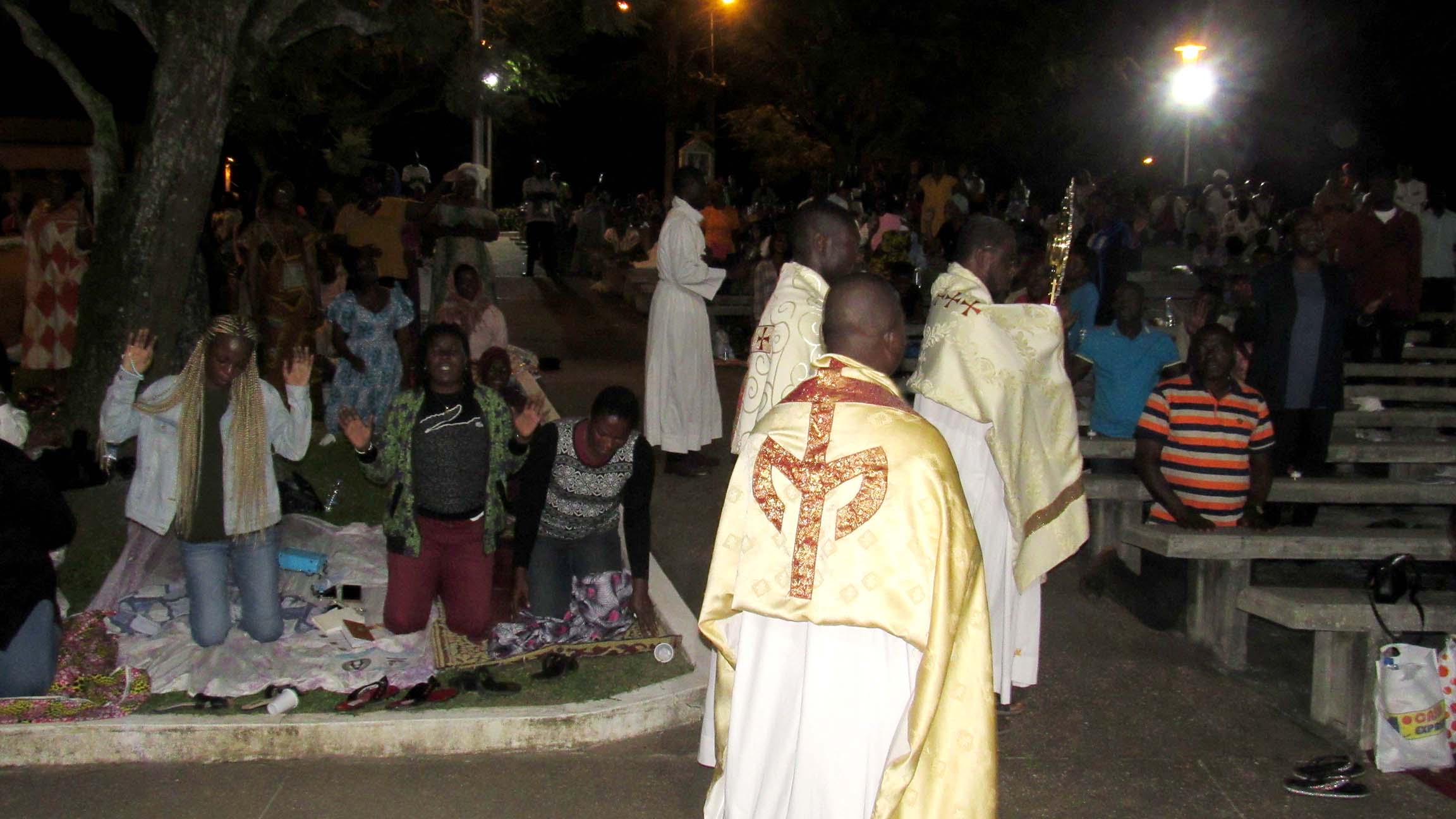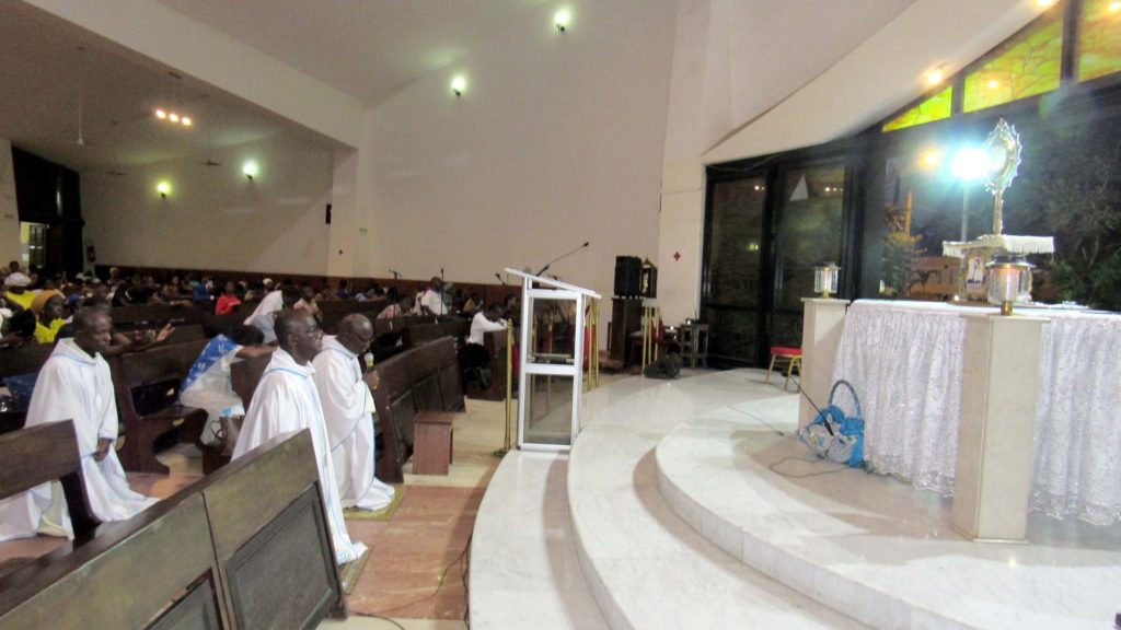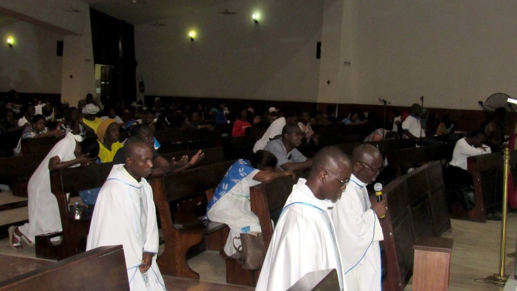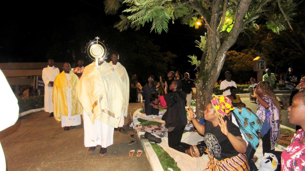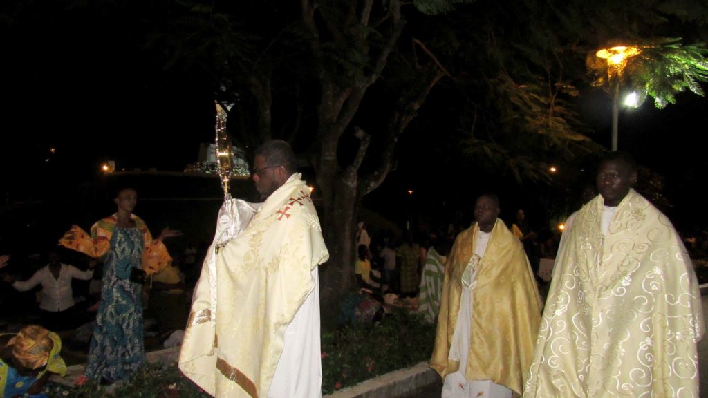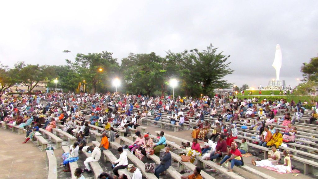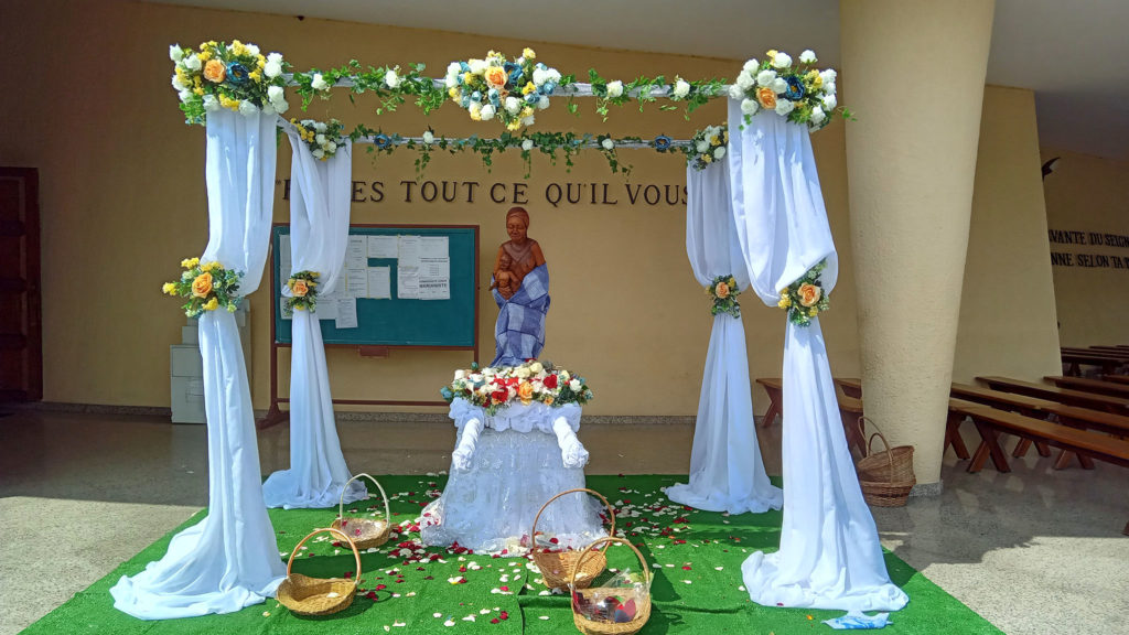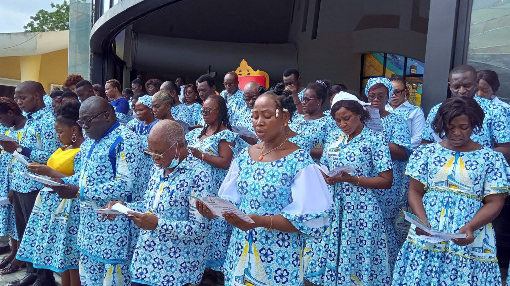 Ce temps de prière a été marqué par la récitation des différents mystères du chapelet, l’invocation du St Esprit, la présentation des groupes à spiritualité mariale. Il faut noter que ce pèlerinage à réuni une dizaine des groupes à spiritualité mariale, notamment : les consacrés à Marie, la communauté Laïcs Marianiste, les Amis du Rosaire, la Jeunesse Mariale Vincentienne, Maria Rosa Mystica, Flamme d’Amour, les Équipiers du Rosaire, la Communauté Oeuvre de Marie, Notre Dame du Perpétuel Secours et la Légion de Marie.