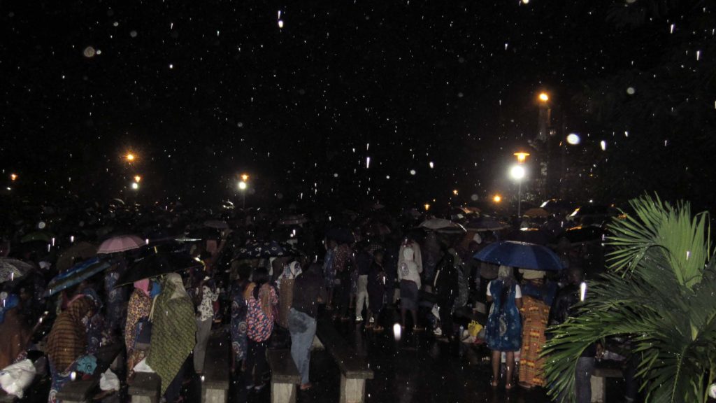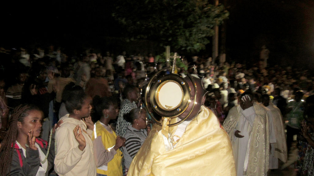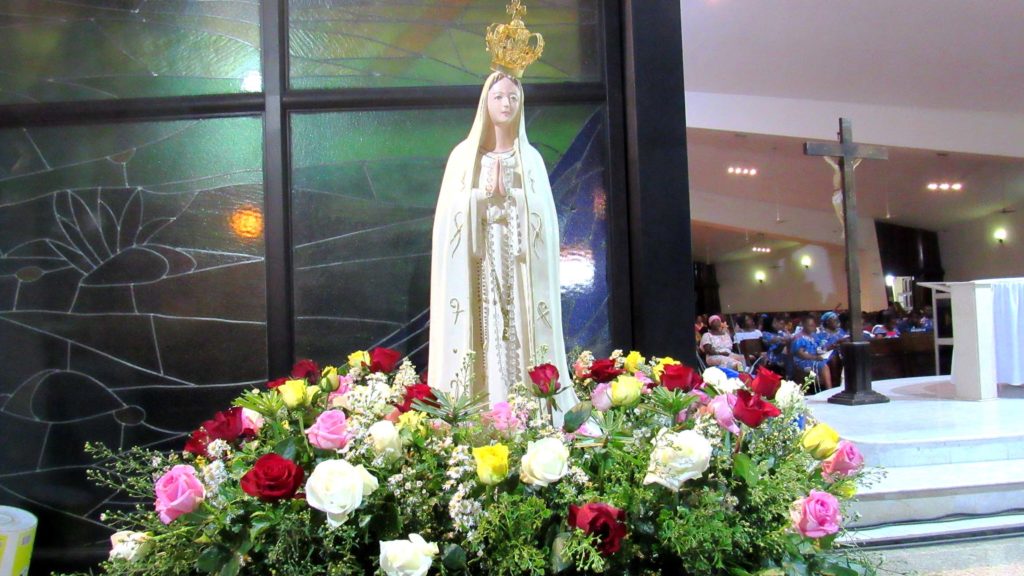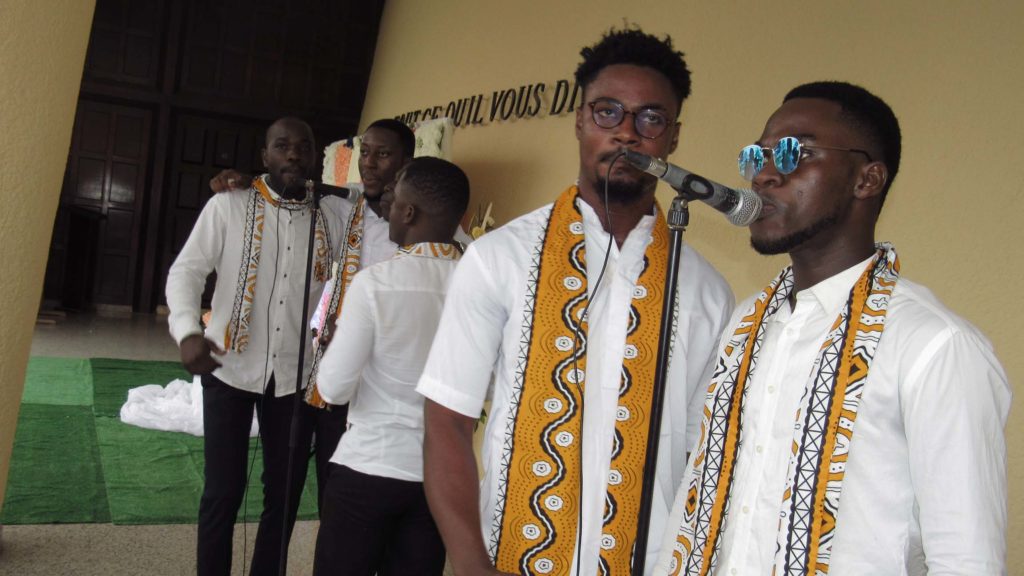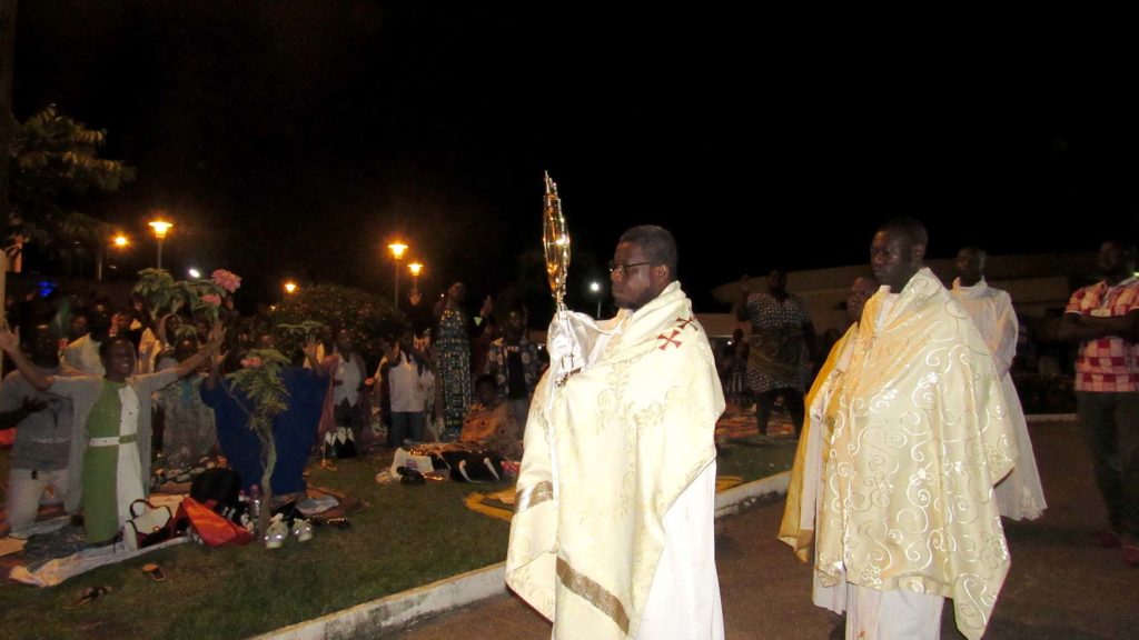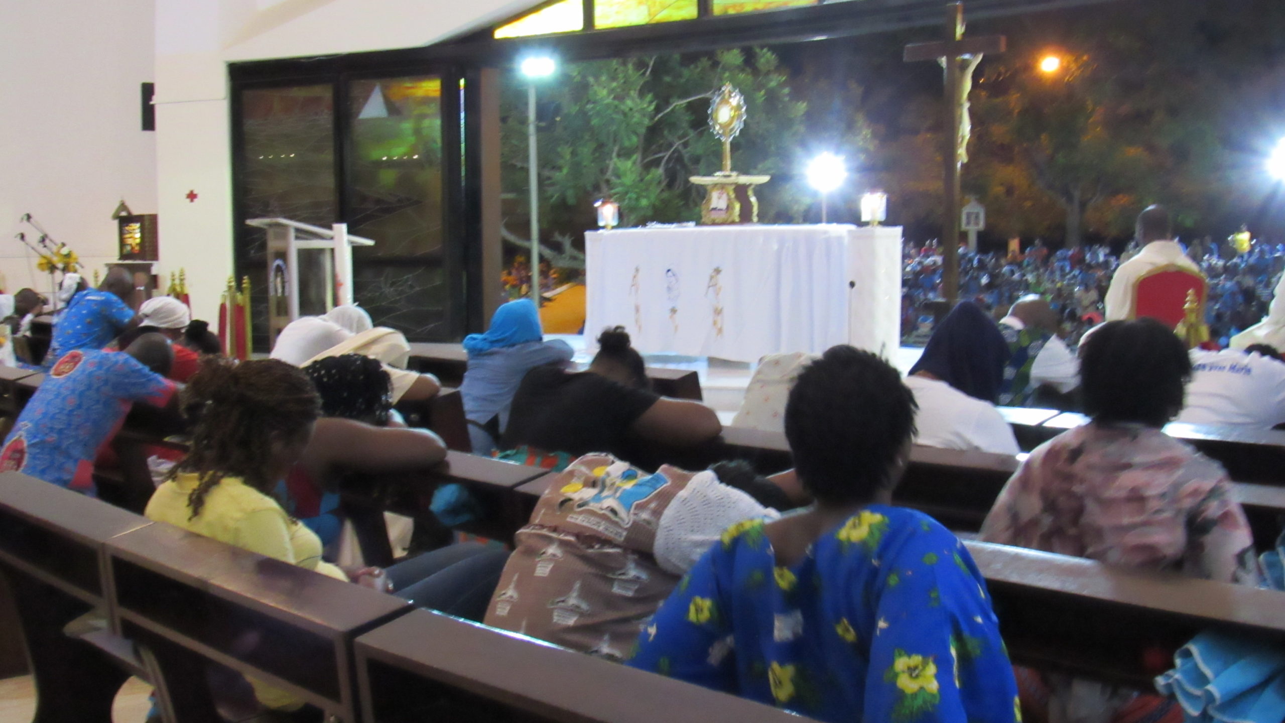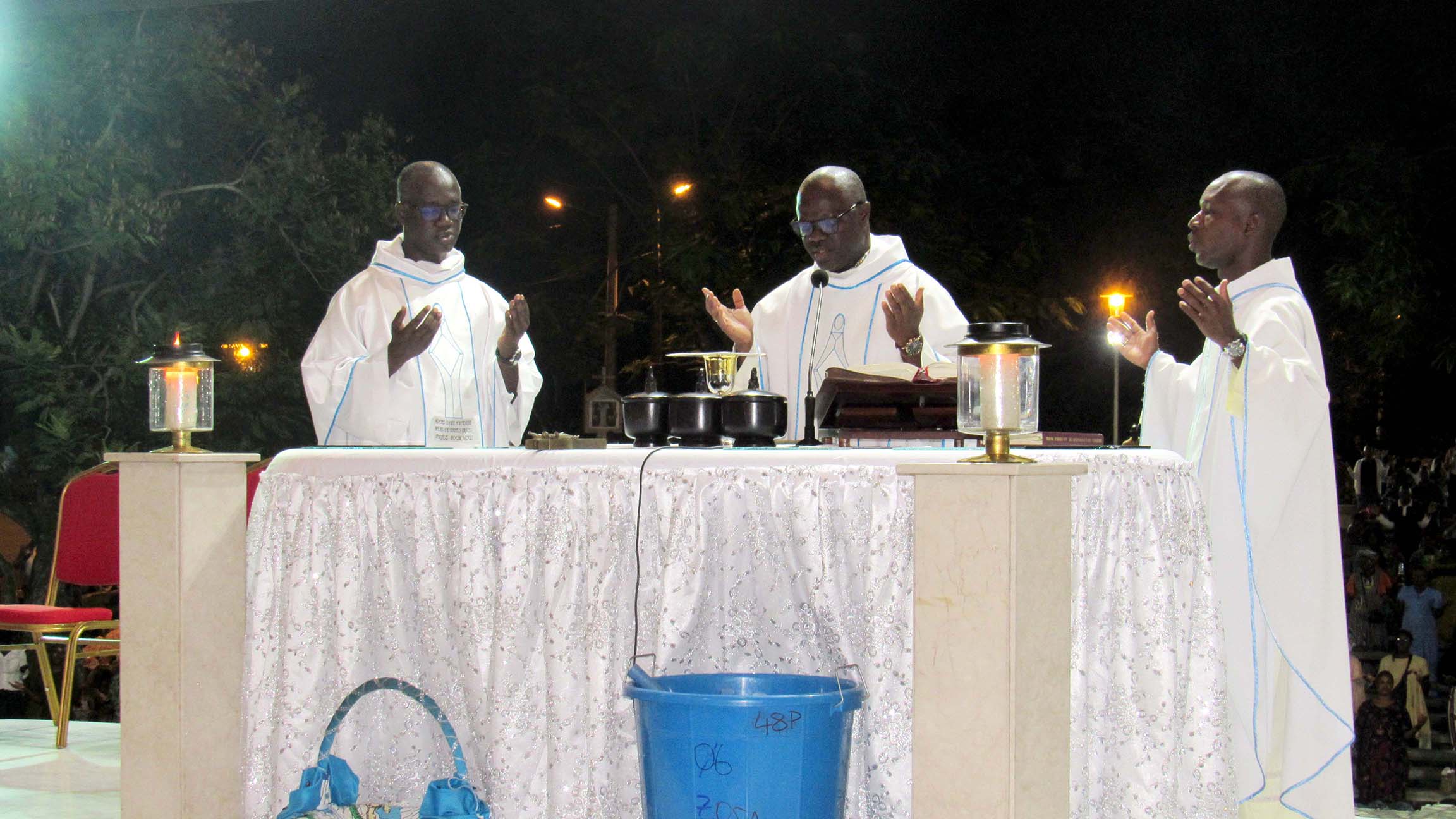 Ce temps de prière a été marqué par la récitation des différents mystères du chapelet, l’invocation du St Esprit, la présentation des groupes à spiritualité mariale. Il faut noter que ce pèlerinage à réuni une dizaine des groupes à spiritualité mariale, notamment : les consacrés à Marie, la communauté Laïcs Marianiste, les Amis du Rosaire, la Jeunesse Mariale Vincentienne, Maria Rosa Mystica, Flamme d’Amour, les Équipiers du Rosaire, la Communauté Oeuvre de Marie, Notre Dame du Perpétuel Secours et la Légion de Marie.