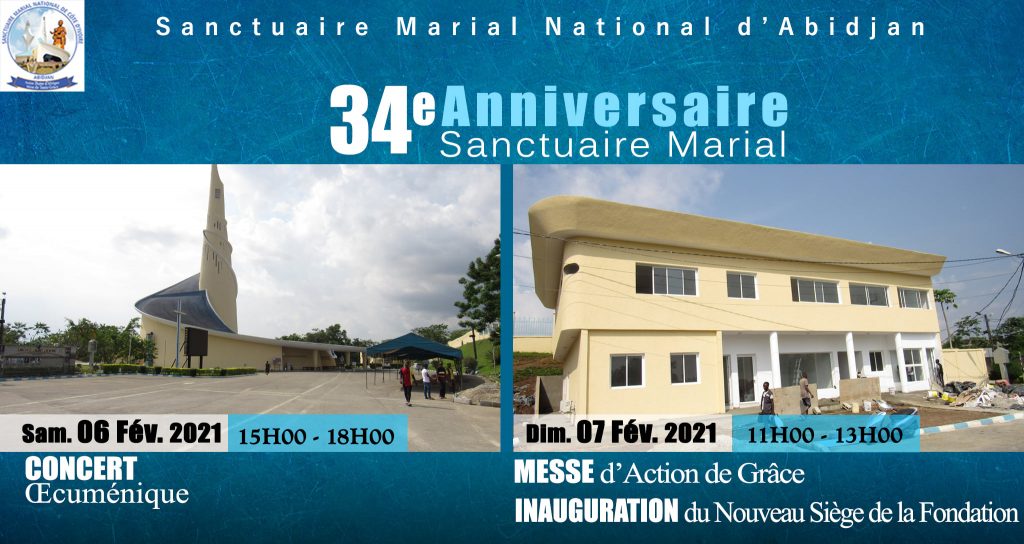 Concert d’Action de Grâce à DIEU pour le 34e Anniversaire du Sanctuaire Marial National d’Abidjan ce samedi 06 Février 2021.