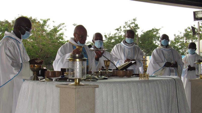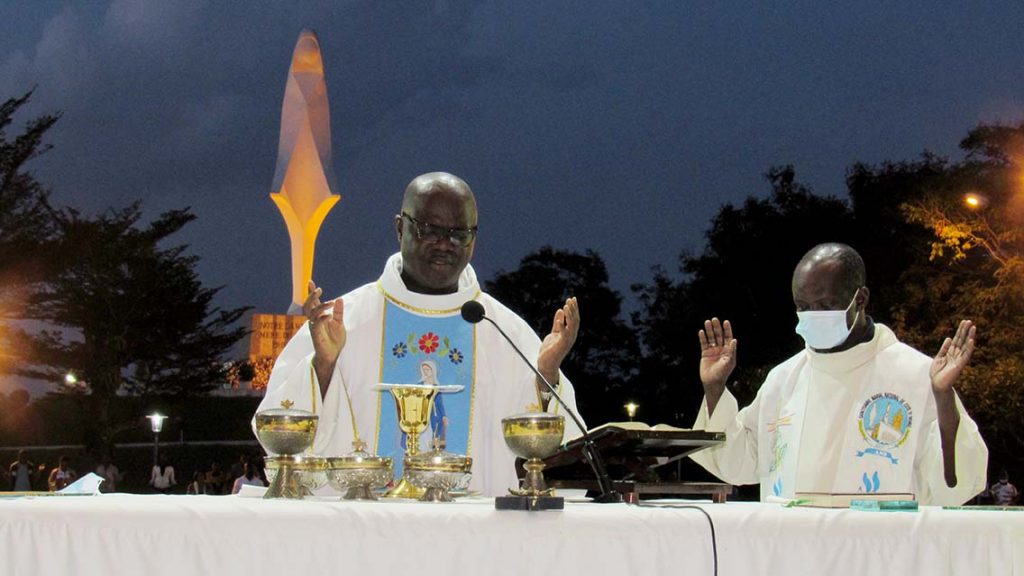 La Messe a été présidée par le Révérend Père Eugène Adingra, Recteur de du Sanctuaire Marial d’Abidjan en compagnie du Père Georges GBEZE, Supérieur du District Marianiste de Côte d’Ivoire.