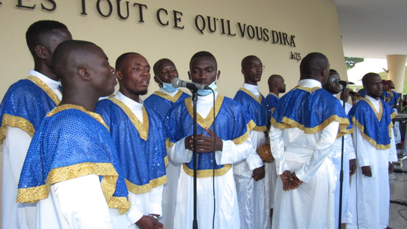 En  application de cette formation, la chorale a dignement animé la Messe dominicale du Sanctuaire Marial ce 25 Avril 2021 à 11h